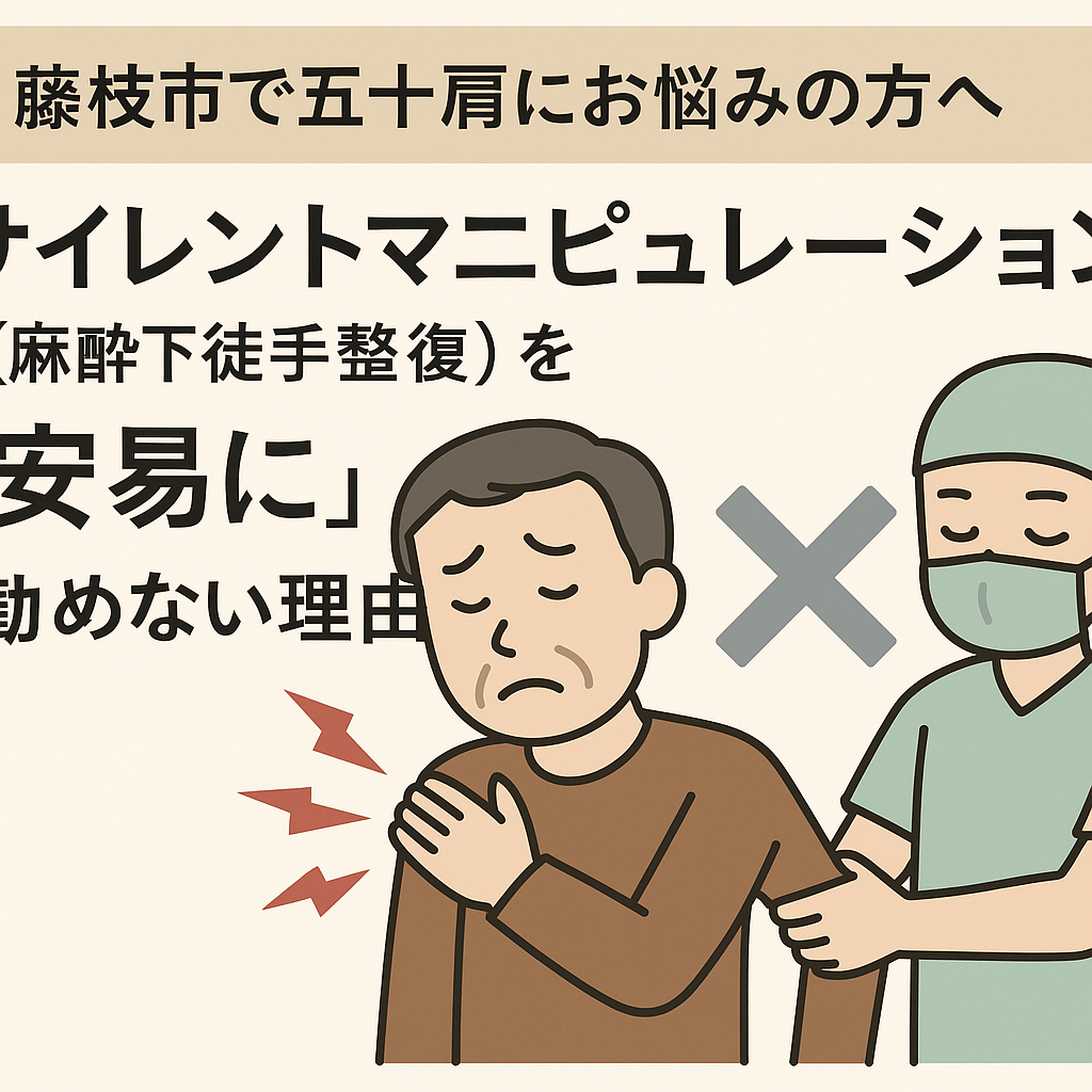 藤枝市で五十肩にお悩みの方へ──サイレントマニュピレーション(麻酔下徒手整復)を“安易に”勧めない理由