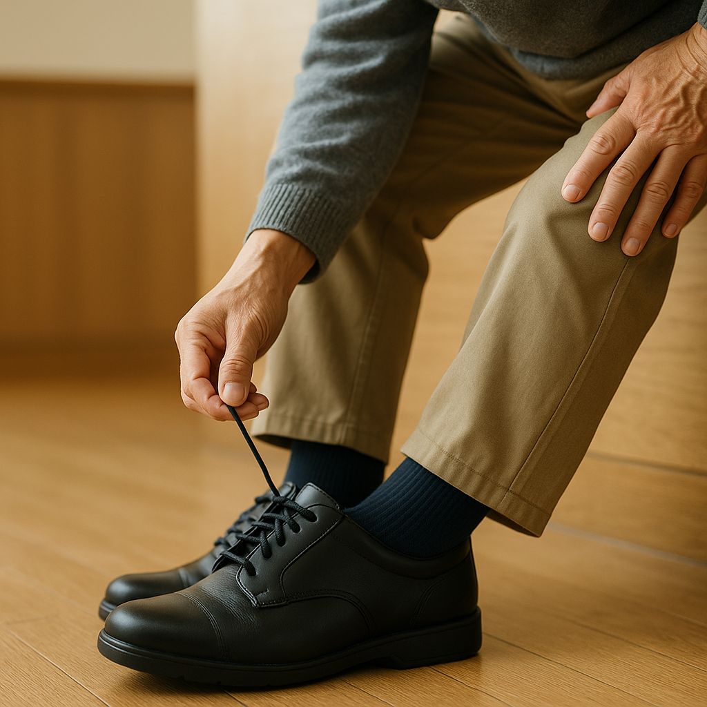 要点:かかと安定+甲固定+正しい屈曲位置で、静かな短歩が自然に出る環境を作る。これが狭窄症の歩きやすさに直結します。